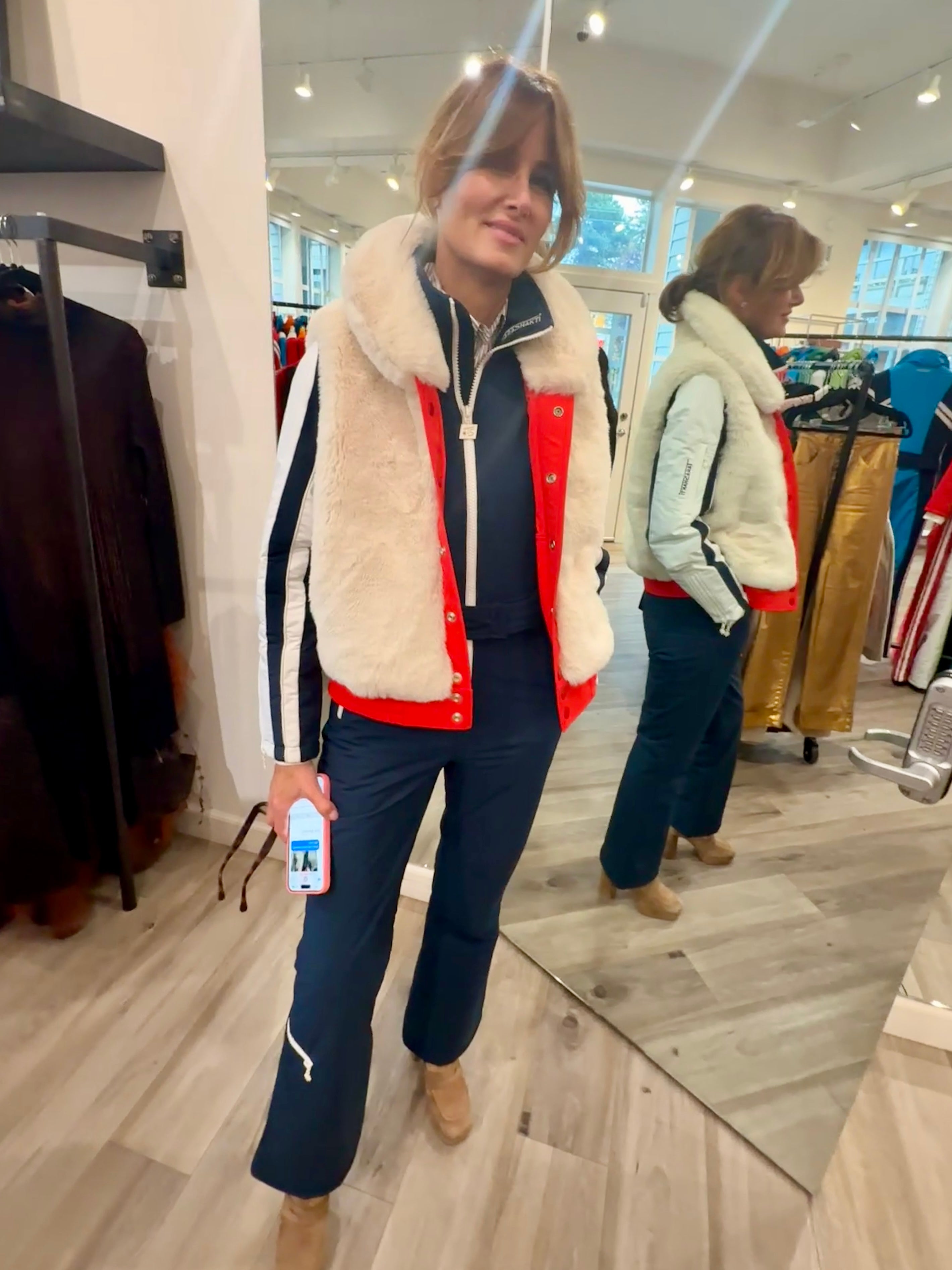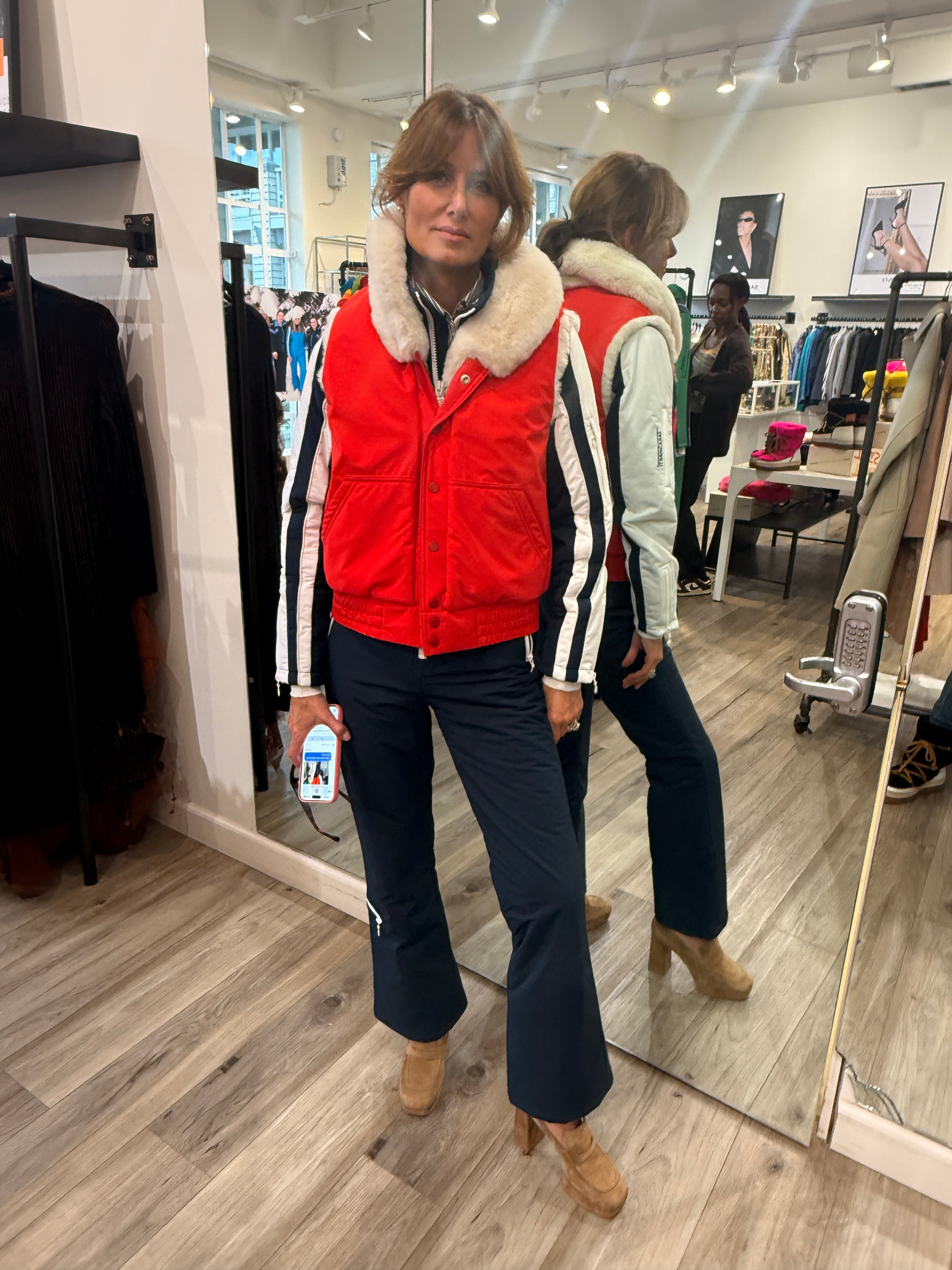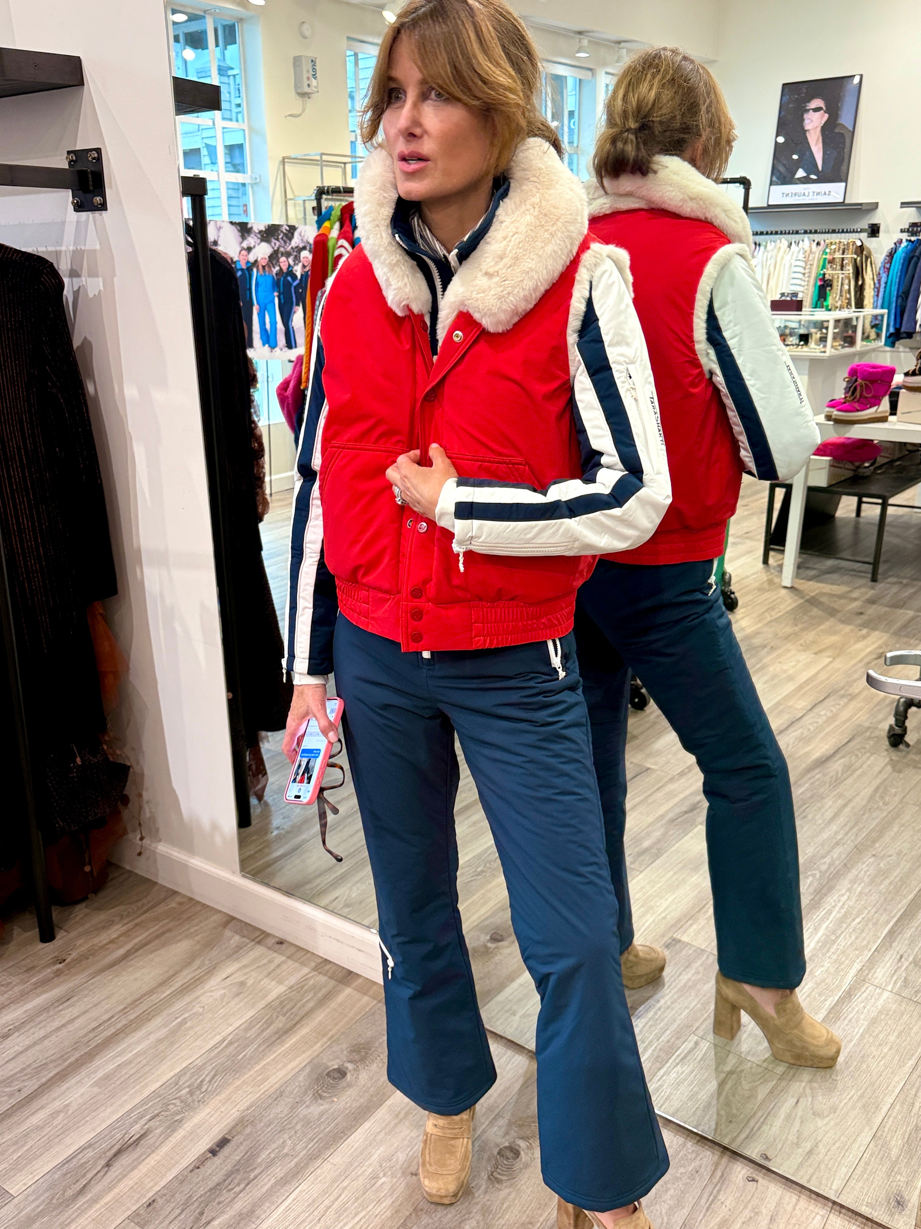 A statement in form and function, this reversible vest blends plush faux-fur sophistication with modern, high-performance innovation. One side channels après allure, the other—sleek, waterproof precision engineered from the same advanced technical fabric as our iconic suits.