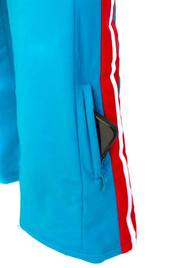 Her brilliant sky-blue hue with vivid red and white striping captures confidence, courage, and joy in motion. Designed with advanced stretch performance fabric, Stacey moves fluidly with your body — a perfect balance of beauty, power, and purpose.