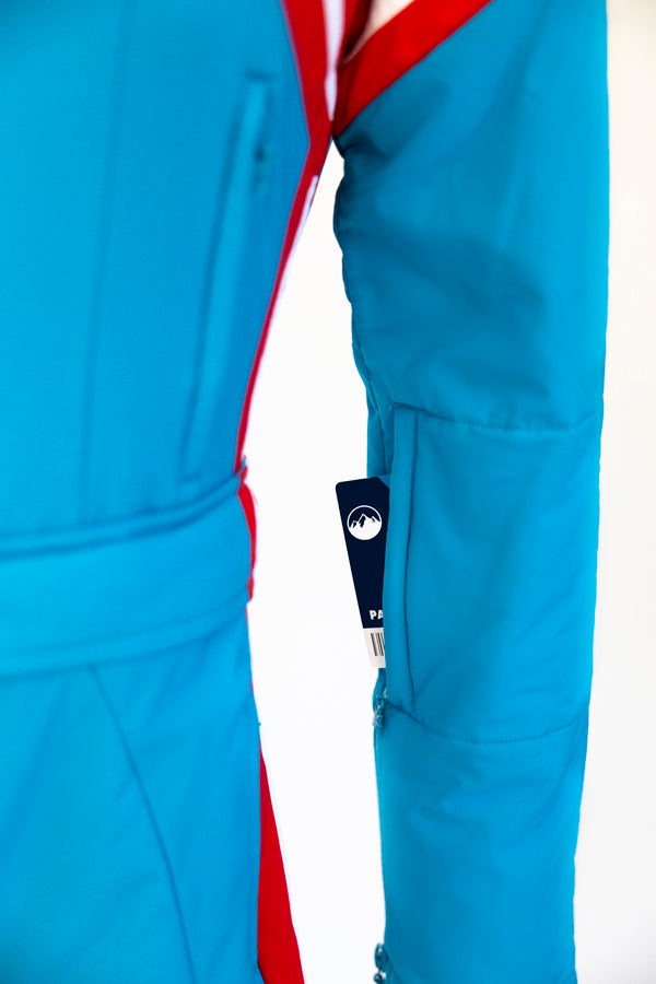 The concealed waist zipper smoothly converts your onesie into a fashionable bomber jacket suitable for Après or the city. Additionally, it simplifies removing the pants for optimal restroom convenience.