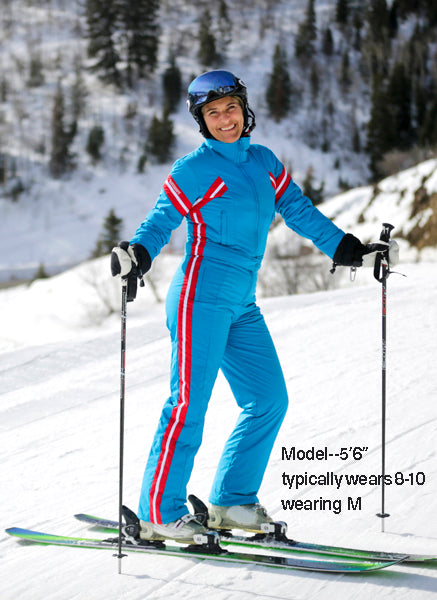 TaraShakti suits are designed with a special blend of high-tech stretch fabrics that hug most body shapes and sizes from 0-18 in all the right places. Our suits are tailored for an athletic, feminine figure, highlights your curves rather than concealing them. This means they may initially feel more fitted than typical outerwear however you will discover the fabric is not restrictive, allowing you to move freely and fiercley in all your winter activities.