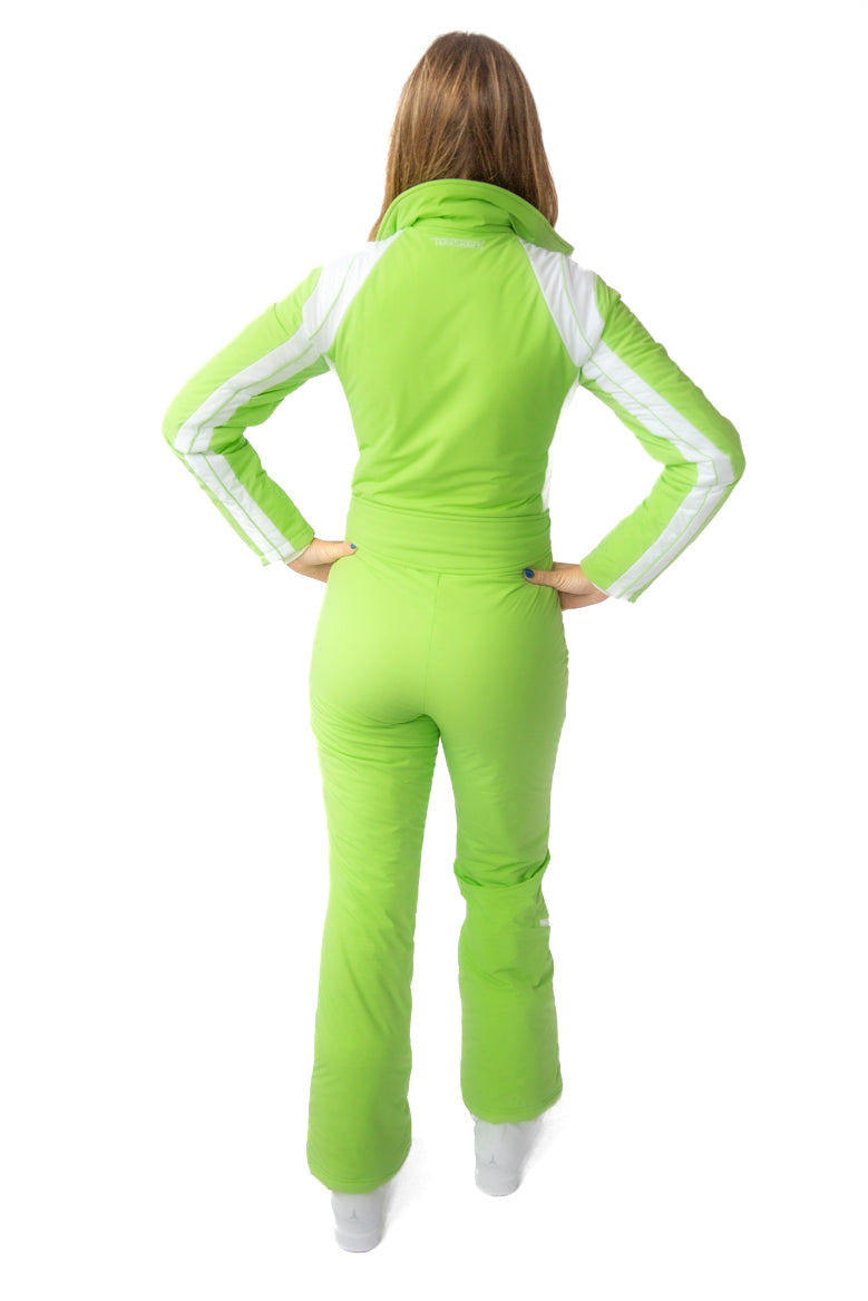 Flo's vibrant lime hue and crisp white striping bring a jolt of optimism to the slopes, radiating confidence and pure fun in motion.