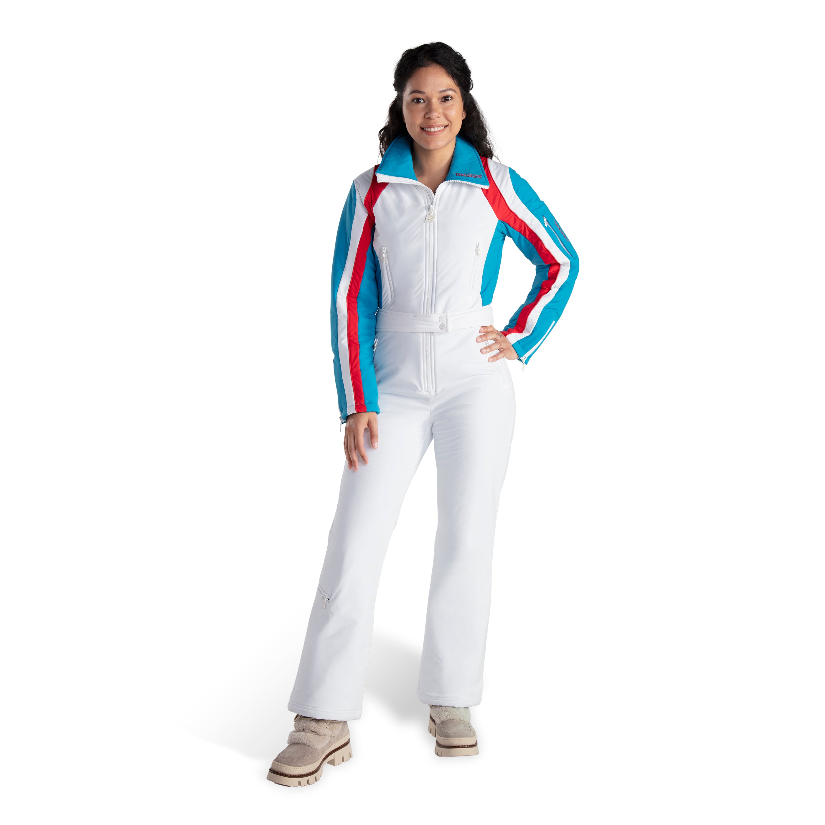 TaraShakti suits are designed with a special blend of high-tech stretch fabrics that hug most body shapes and sizes from 0-18 in all the right places. Our suits are tailored for an athletic, feminine figure, highlights your curves rather than concealing them. This means they may initially feel more fitted than typical outerwear however you will discover the fabric is not restrictive, allowing you to move freely and fiercley in all your winter activities.